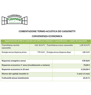 Il cassonetto è un vero e proprio foro che occupa due terzi della sezione del muro, chiuso verso l'interno da un modesto compensato di ispezione dello spessore di pochi millimetri. La tenuta all'aria lungo il perimetro è solo approssimativa ed il foro guidacinghia dove passa il nastro per l'avvolgimento mette direttamente in contatto l'ambiente interno dell'abitazione con l'esterno, causando spifferi, perdite di temperatura e passaggio di rumore.