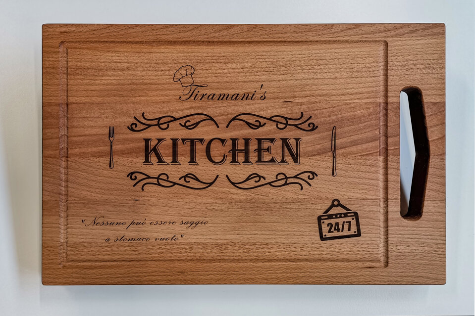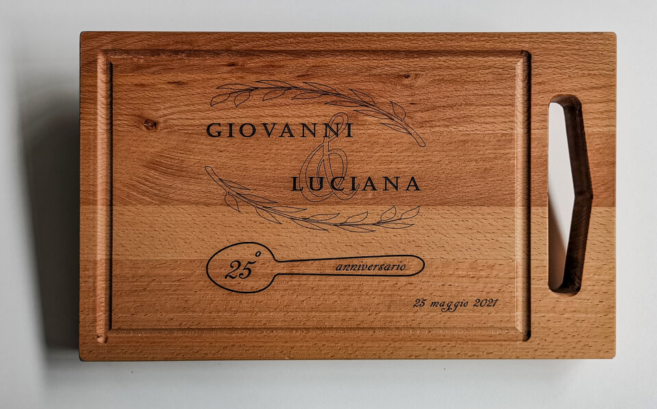 la Falegnameria viene incontro alle esigenze della clientela realizzando prodotti unici personalizzati con incisioni laser:
